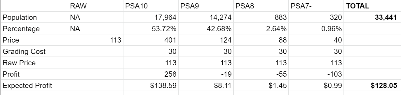 Before we go, our past few articles have focused on how to value cards. Astute readers might have noticed, however, that we did not really touch on grading in any of those articles. So how does grading fit into our valuation framework?
