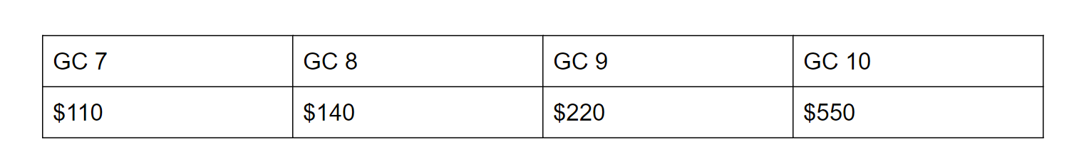 But from our time in World A, we know what will happen next - if there is an easy $650 to be made, people will flood GradeCo with Card X submissions. Now though, when someone submits a Card X for grading, it might not get a GC10 - it could get a GC8, GC9, or if you are really unlucky a GC7 or lower.